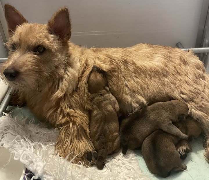 Norwich Terrier litters Dutch Onyx Diva X Moveable Feast Central Forward (Zevs). born on June 18: 2 males and 1 females.